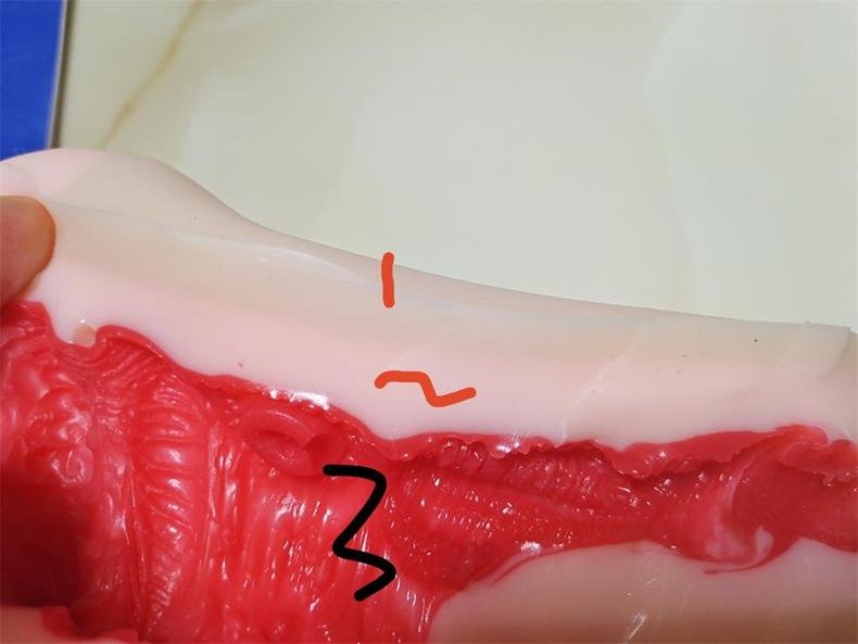 通道:既然到通道这方面了,主要先聊一下灰姑娘的三层构造模式,这也是这个产品的亮点。市面上产品大致分为慢玩的软、还有高刺激的硬灰姑娘,弥补了“太硬OR太软” 这样的缺陷,灰姑娘外面那层是弹性素材,稍硬一些。对于外表存在降低出油,耐磨、手握感加强等作用。玩具中间的软质柔肌提升通道的包裹感。通道内部采用仿生腔材质,集肉芽咬合,褶皱,G点,子宫吸允,螺旋腔壁压迫。红色柔嫩腔道使得接近真人通道般的感触。三层材质,层层递进软度,这样设计,无论最外面手握的触感,还是最里面JJ的触感,都是不一样的,这样体验感更佳。